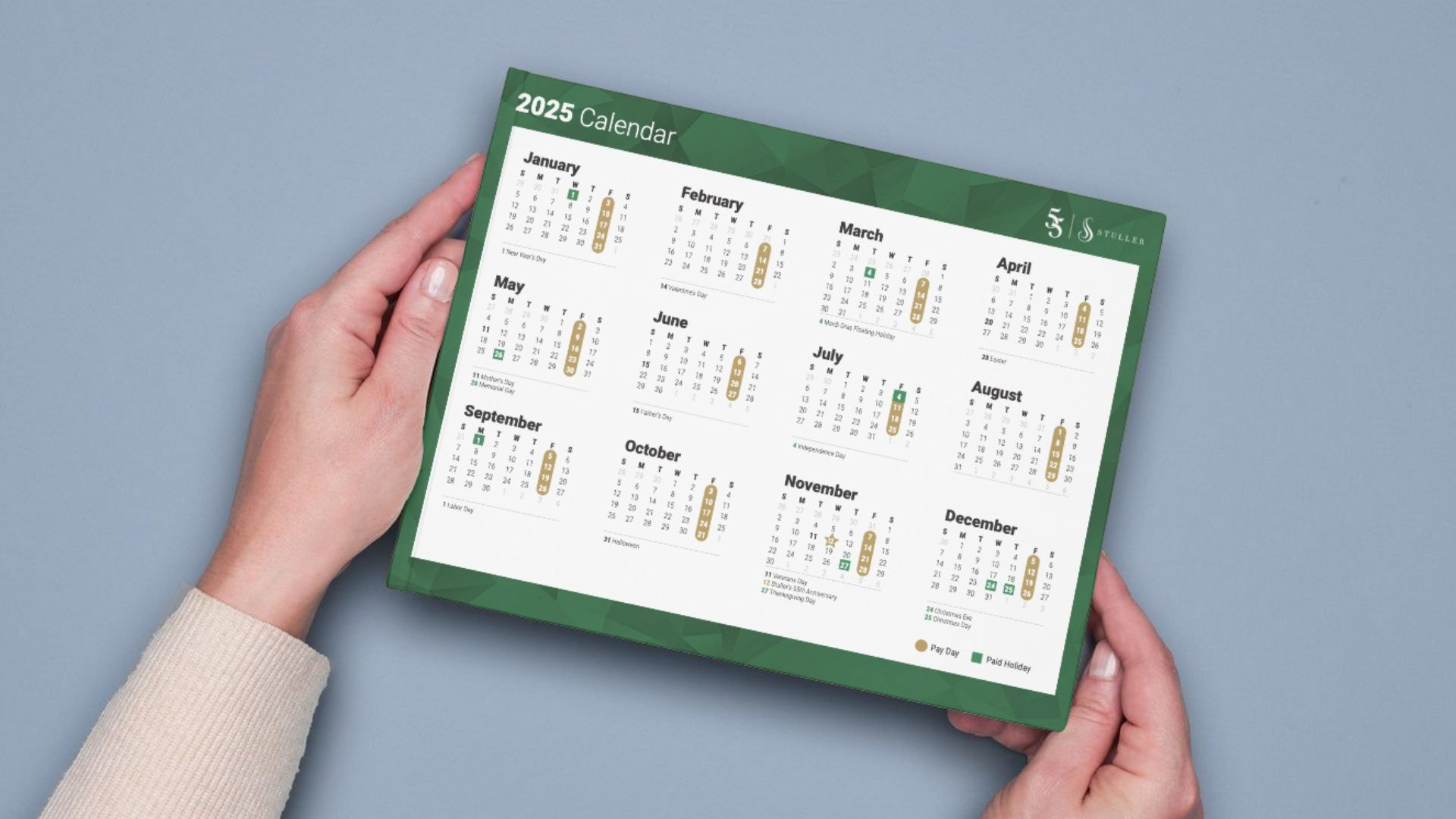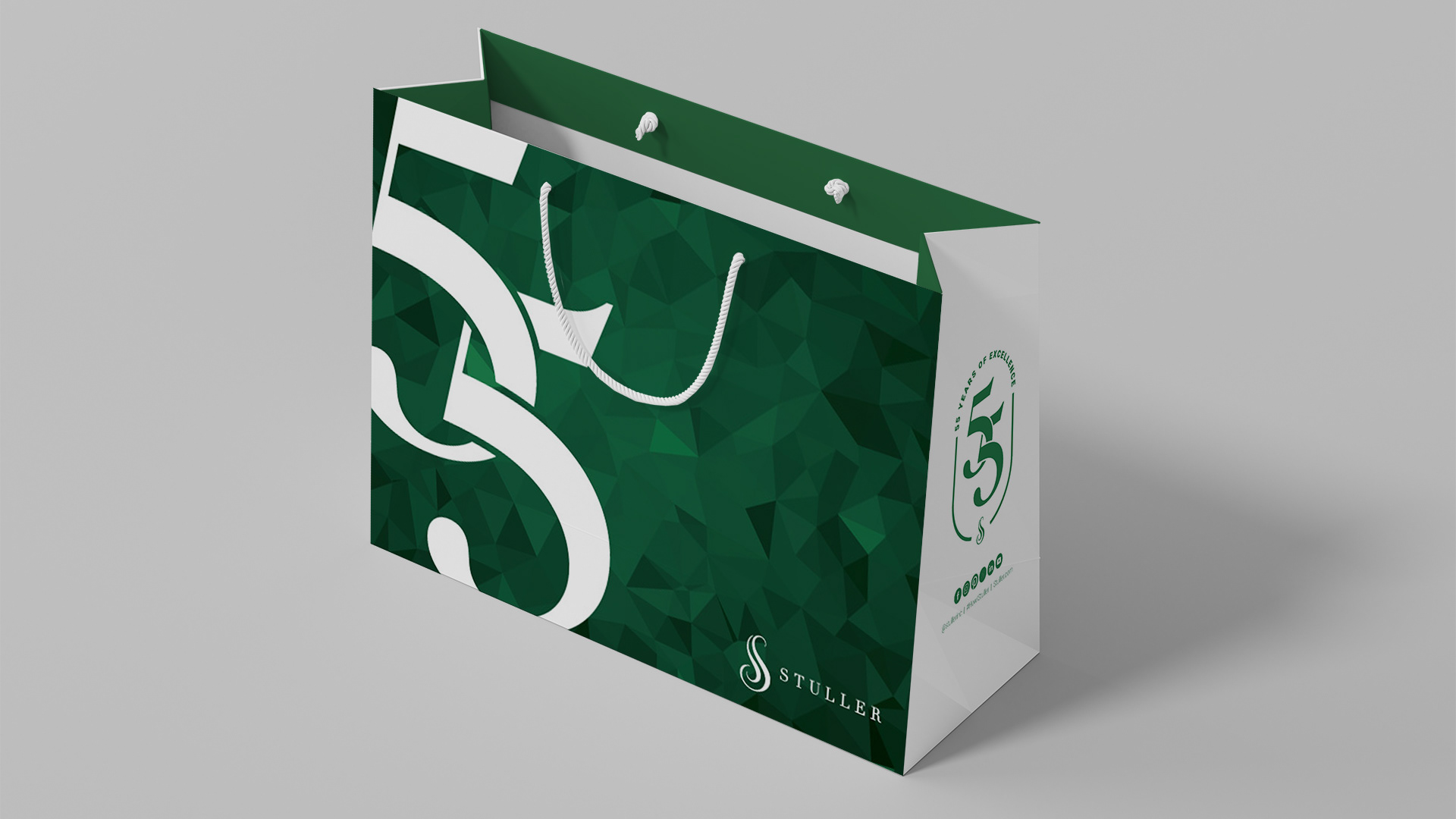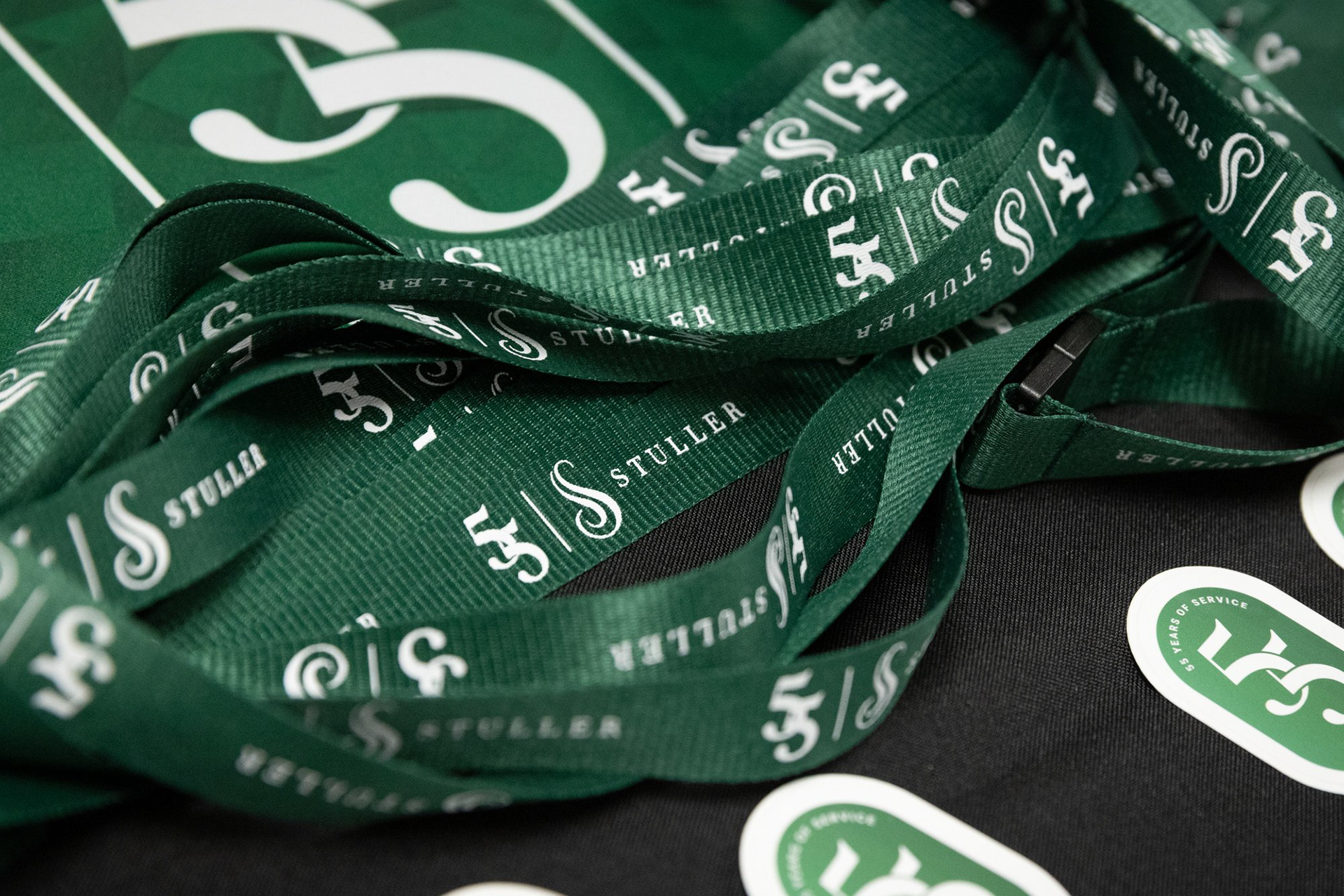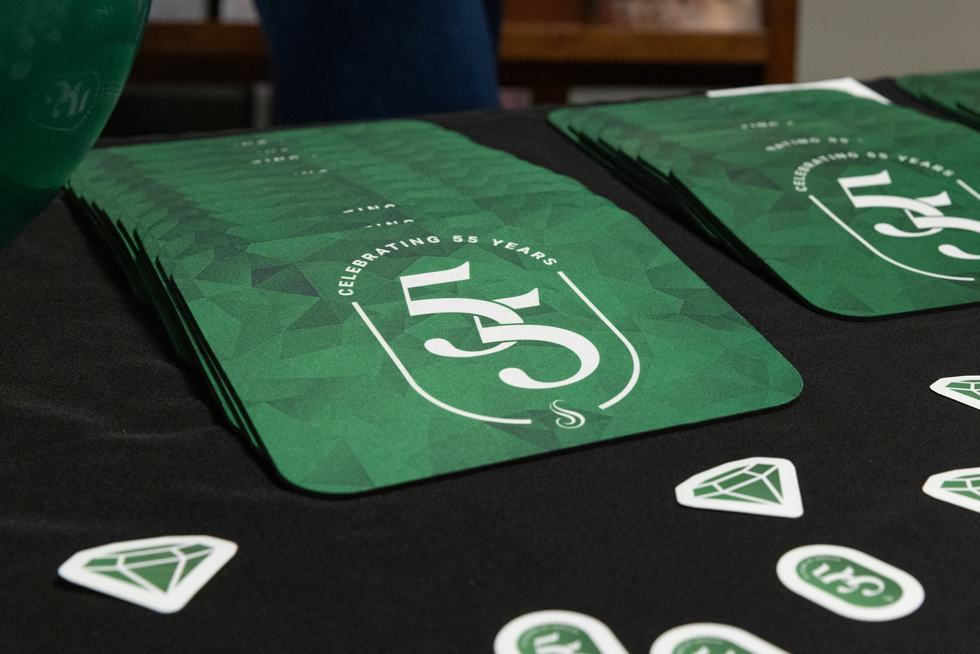 Stuller, an international jewelry manufacturer and distributor based out of Lafayette, Louisiana, celebrated its 55th anniversary in 2025. To commemorate this impressive birthday, the company tasked its internal marketing team with creating a logo for the occasion. This logo and surrounding creative were used for multiple deliverables throughout the year including: corporate greeting cards, mouse pads, stickers, lanyards, calendars, screensavers, swag bags, brochures, and much more.